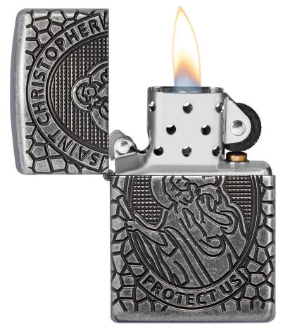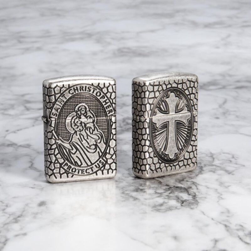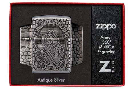 На этой зажигалке Armor® Antique Silver изображен святой Христофор, которого считают покровителем, особенно в путешествиях и длительных поездках. Технология объемной гравировки Zippo 360° MultiCut покрывает всю зажигалку, от изображения святого Христофора на лицевой стороне до расходящегося креста на обратной, каждая деталь подчеркнута покрытием Antique Silver Plate. Роскошная упаковка позволяет лучше рассмотреть детали дизайна MultiCut, благодаря чему эта премиальная зажигалка выделяется среди других. Для оптимальной работы заправляйте зажигалку топливом Zippo.